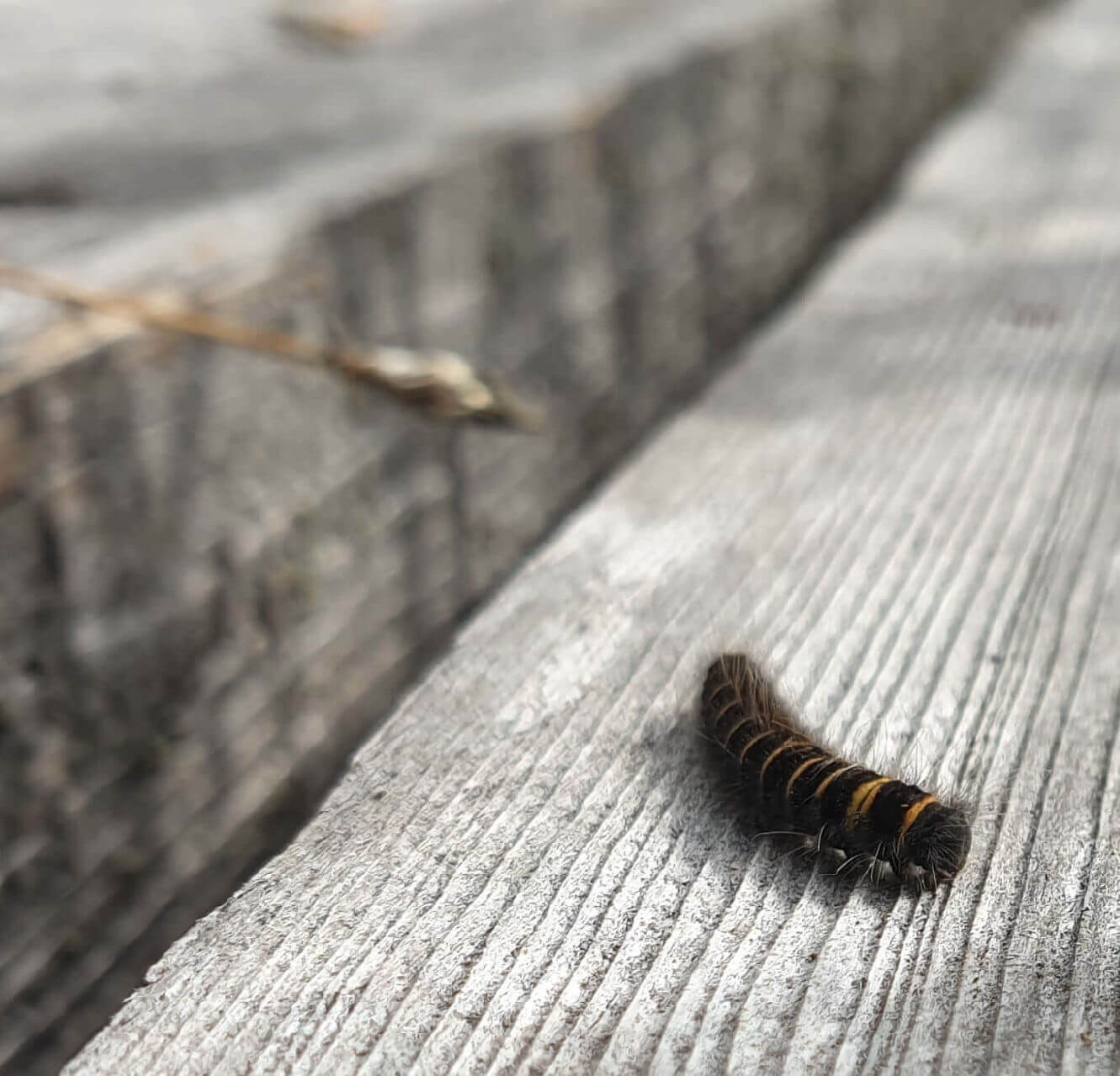 Frisbeegolfväylällä yritti piiloutua maaston värinen metsämittariuros, jolla on komeat harjamaiset tuntosarvet. Siivissä kultaa!